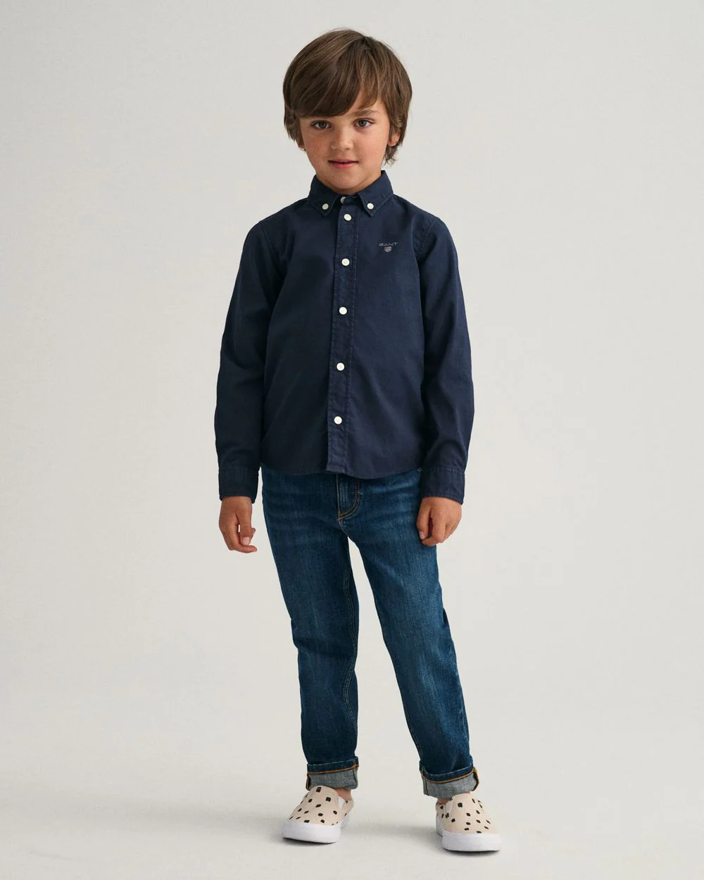 Crafted from a soft cotton twill fabrication, this regular fit shirt for boys is elevated with our signature GANT logo embroidered at the chest. With classic detailing like the button-down collar, the box pleat and a locker loop in the back, it bears all the hallmarks of our heritage. Pair with denim or chinos, depending on the occasion.