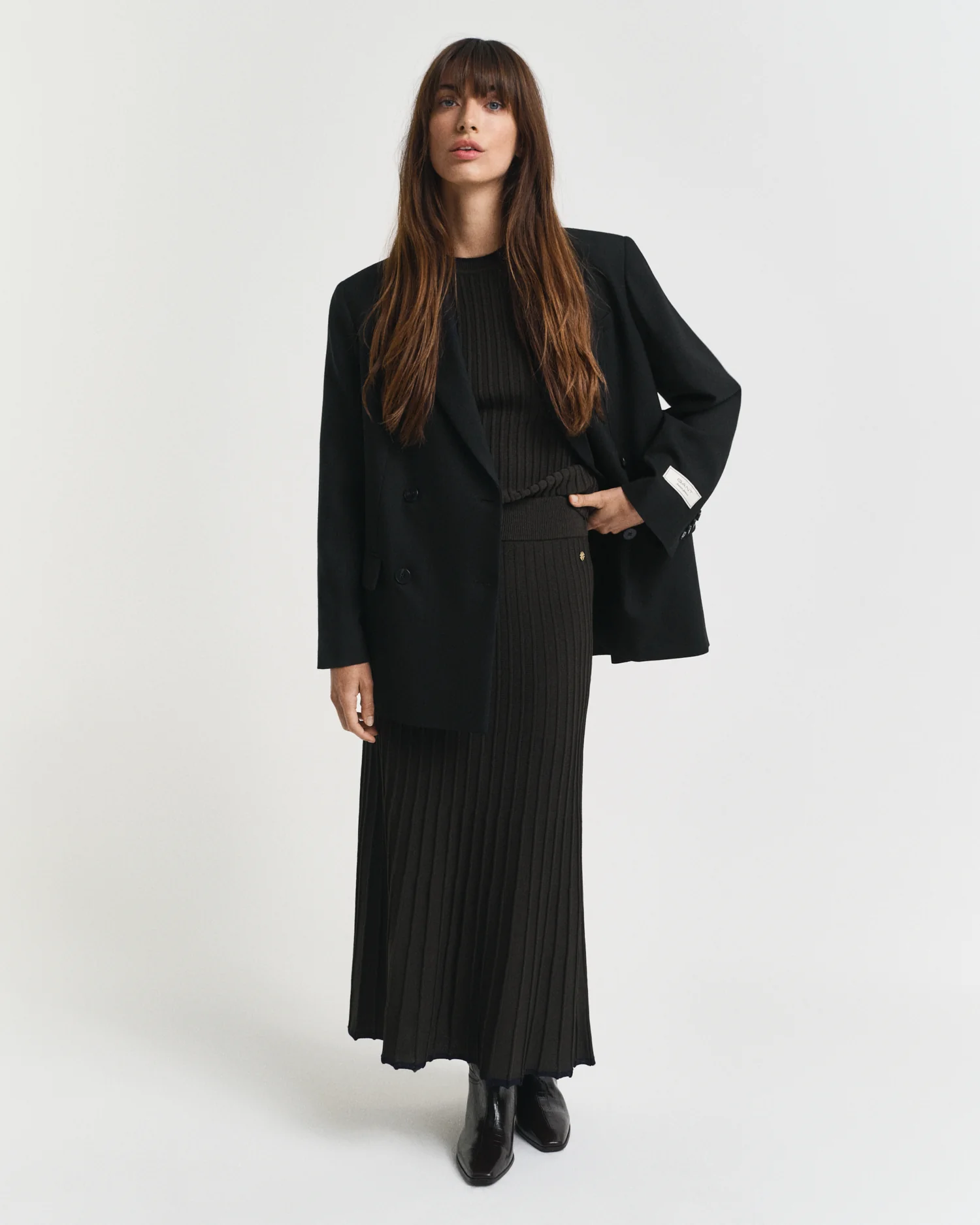This midi skirt is made from a viscose-modal blend in a ribbed-knit construction, giving it a soft texture and semi-shiny element. It's designed for a loose fit with a mid-rise waist and a midi length. Ribbed at the top with a soft elastic waistband for extra comfort, this skirt is complete with contrast tipping at the hem and a gold-toned monogram charm at the waist.