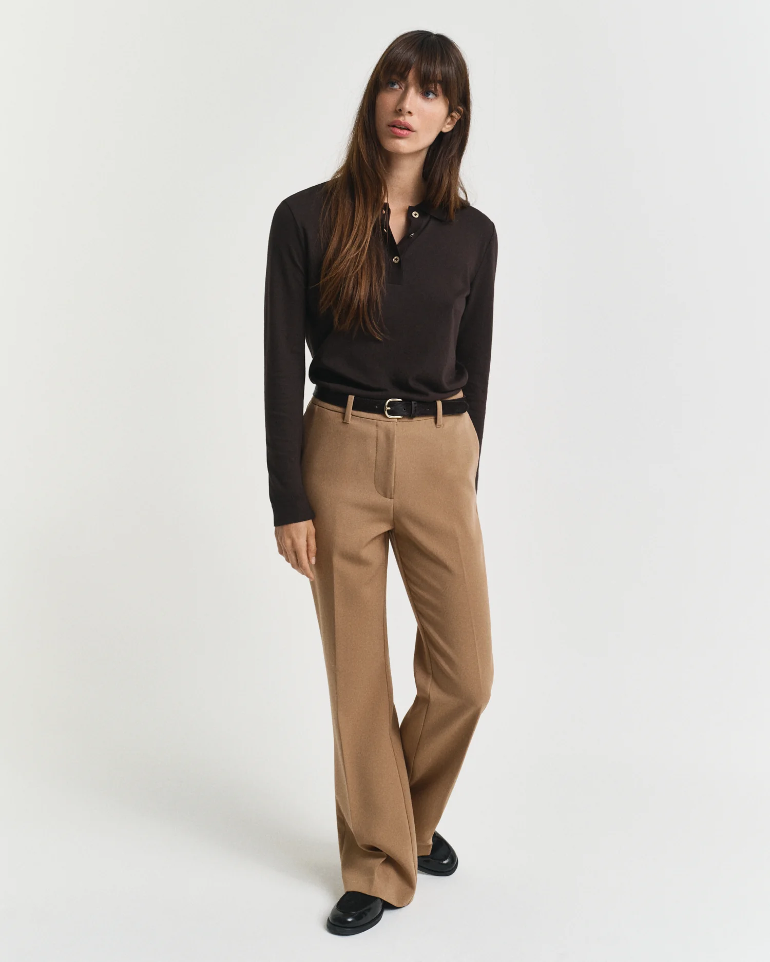 This polo shirt is designed in a luxuriously single jersey fabrication from a soft cotton-modal blend. Cut for a regular fit, it features long sleeves and a flat knit polo collar adorned with branded gold-toned buttons. Other features include a self-edge knit detailing at the beginning of the hem and sleeves, plus a GANT logo embroidered at the left side's cuff.