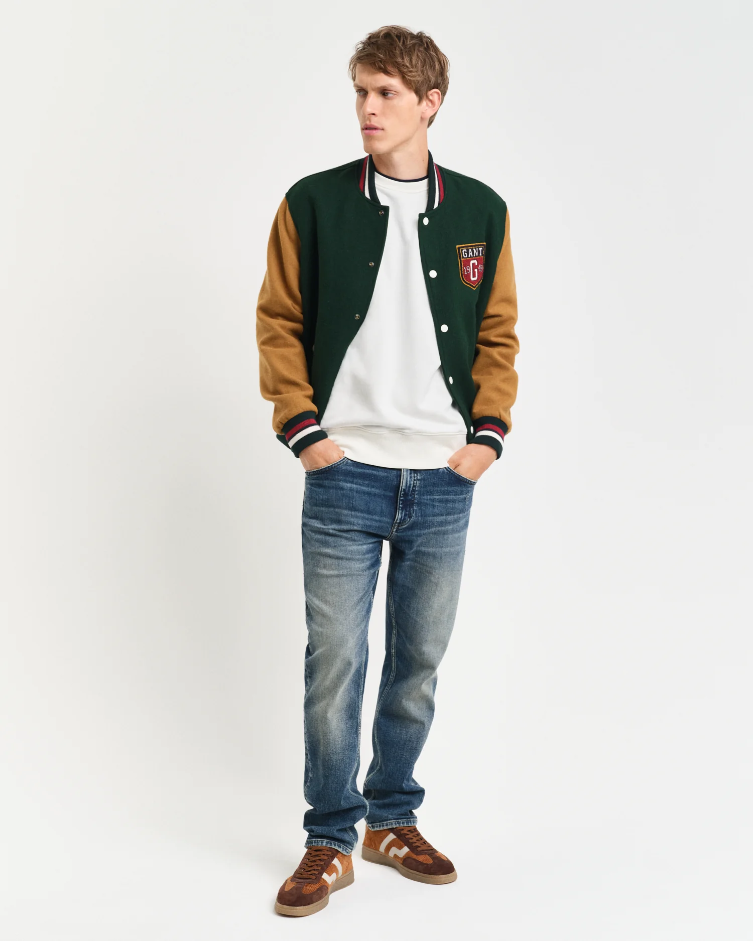 Featuring a small-scale shield graphic embroidered at the chest, this crew neck sweatshirt is detailed with ribbing at the neck, sleeve cuffs, and hem.