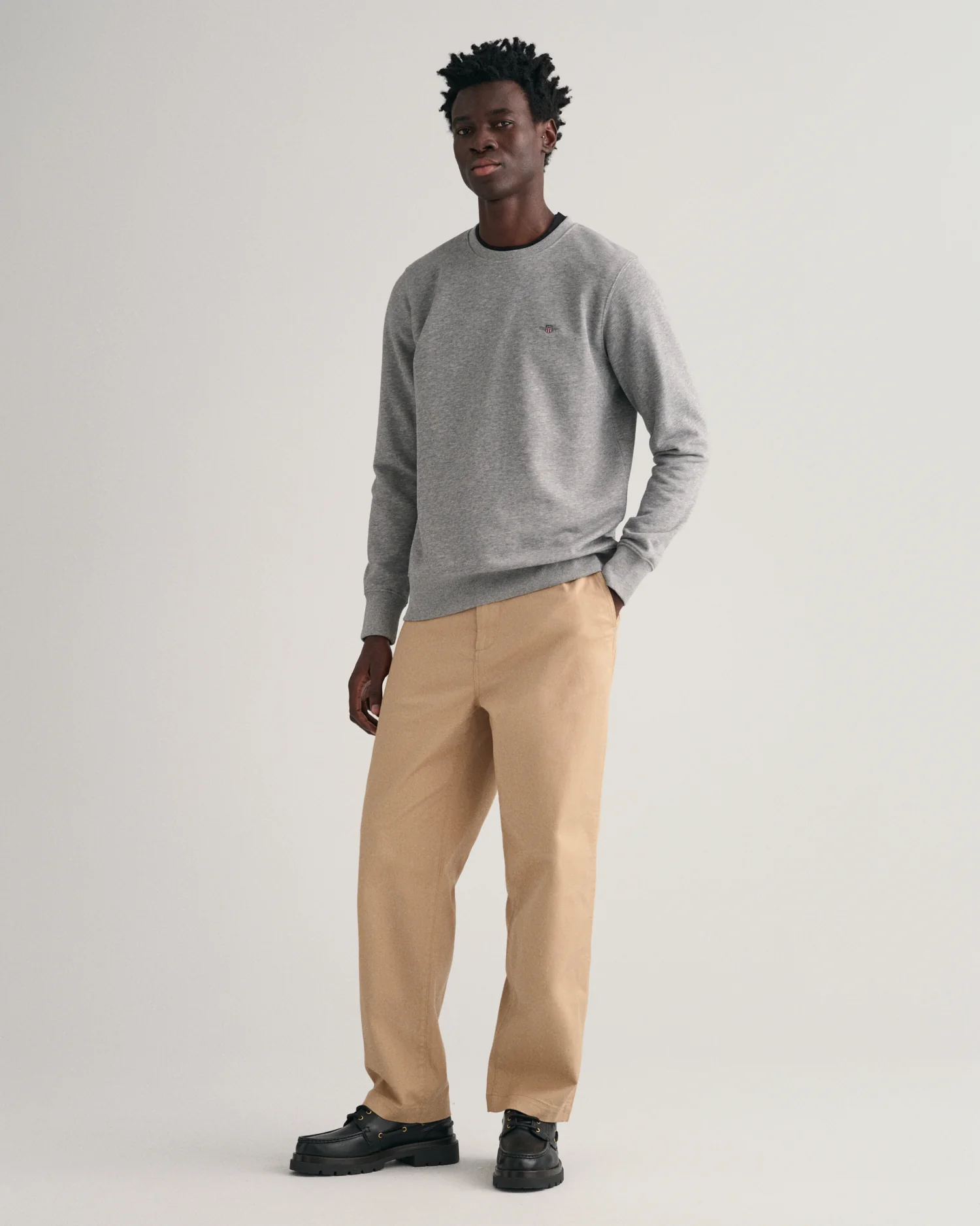 Featuring a small-scale shield graphic embroidered at the chest, this crew neck sweatshirt is detailed with ribbing at the neck, sleeve cuffs, and hem.