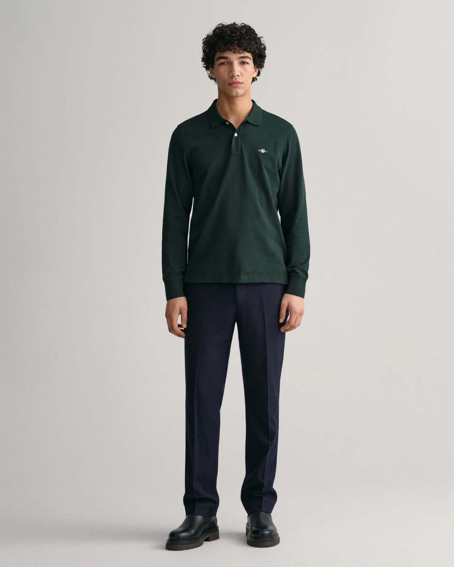 Crafted from soft and breathable cotton, this long-sleeved rugger features a two-button placket and small slits at the sides. Perfect for layering, wear it on its own or under a blazer for a tailored sporty look.